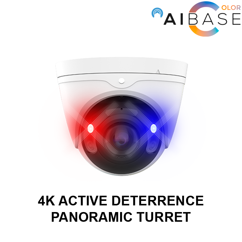 Smart turret camera with active deterrence.